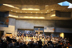 Am vergangenen Wochenende ist unsere diesjährige Tournee in Trun und in Chur gestartet. Die zahlreichen Besucherinnen und Besucher genossen die Konzerte und waren restlos begeistert von den jungen Sängerinnen und Sängern unserer Schule, die unter der Leitung des neuen Chorleiters Peter Werlen brillierten. Auch die Solisten und das Orchester überzeugten das Publikum restlos. Am kommenden Wochenende geht es weiter in Andermatt und in Zürich.